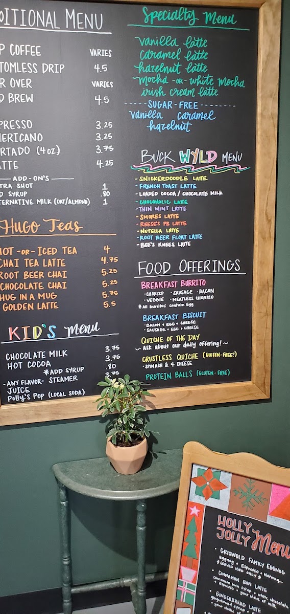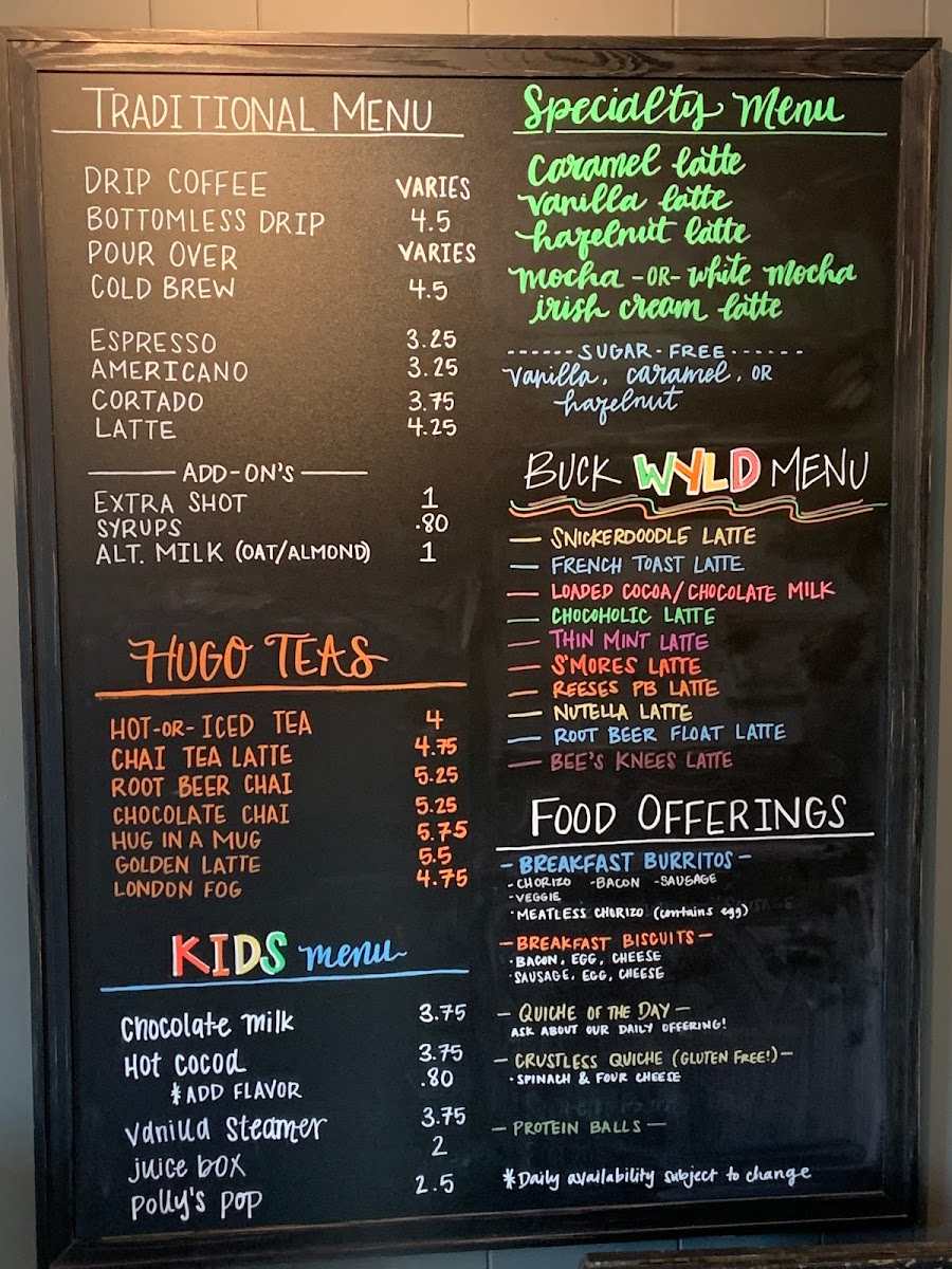 Scout Coffee's menu is a coffee lover’s dream come true. Dive into their Specialty Menu, where drinks like the enchanting Brown Sugar Latte and the festive Irish Cream Latte add a touch of luxury to your day. For those with a penchant for extra flair, the Buck Wyld Menu showcases imaginative creations like the indulgently rich Smores Latte and the deliciously nostalgic Thin Mint Latte. Kids aren’t left out either, with options such as Chocolate Milk and Hot Cocoa - all for just $4.00!